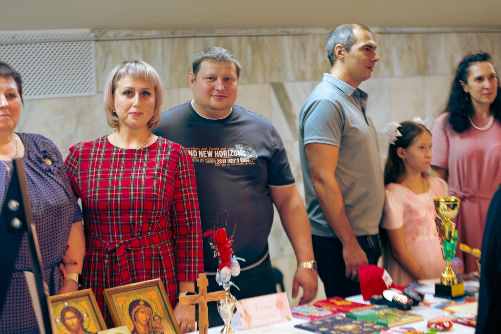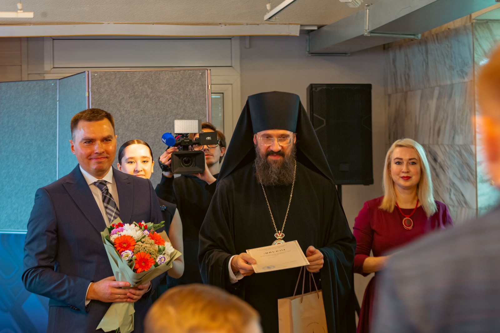 Епископ Агафангел и Глава Норильска Дмитрий Карасев приветствовали участников выставки. Затем состоялось вручение дипломов и памятных подарков участникам Фестиваля и многодетным семьям.