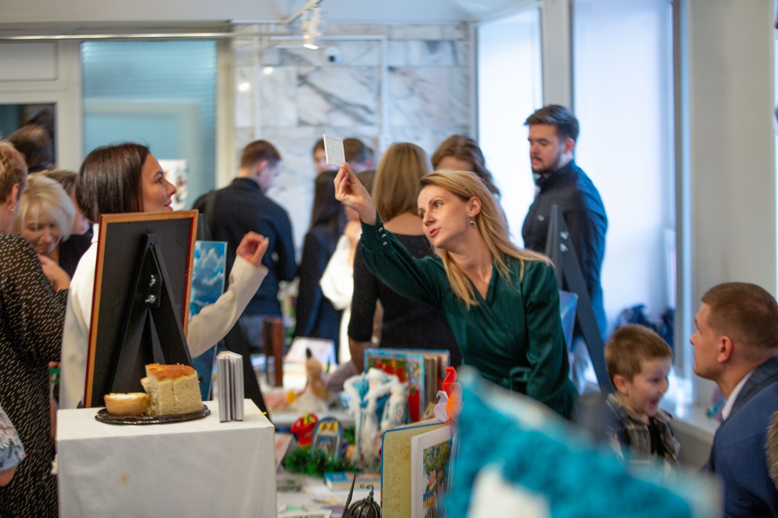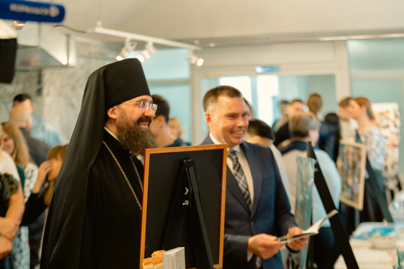 Перед началом концерта в выставочном зале ГЦК Глава города Норильска Дмитрий Владимирович Карасев, епископ Норильский и Туруханский Агафангел, заместитель Главы города Норильска по социальной политике Наталья Михайловна Коростелева, председатель благотворительного фонда социальных программ «Территория добра» Светлана Владимировна Зенина и председатель епархиальной комиссии по культуре Олеся Александровна Проняева ознакомились с семейной выставкой «Это у нас по-семейному».