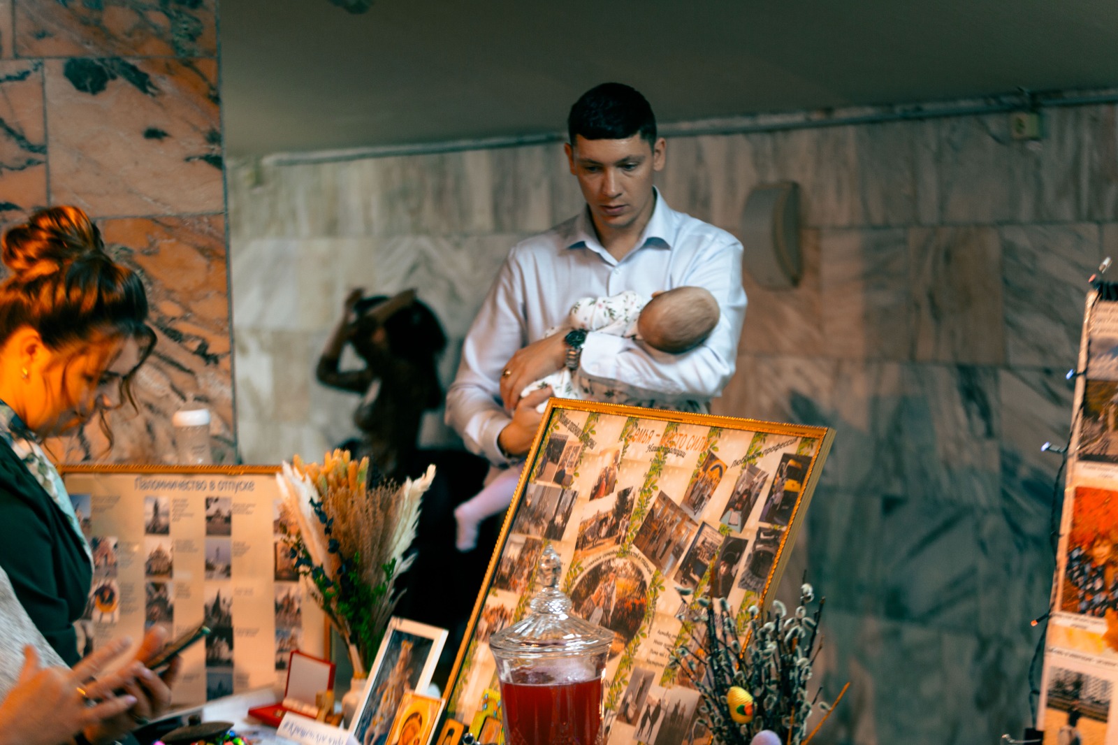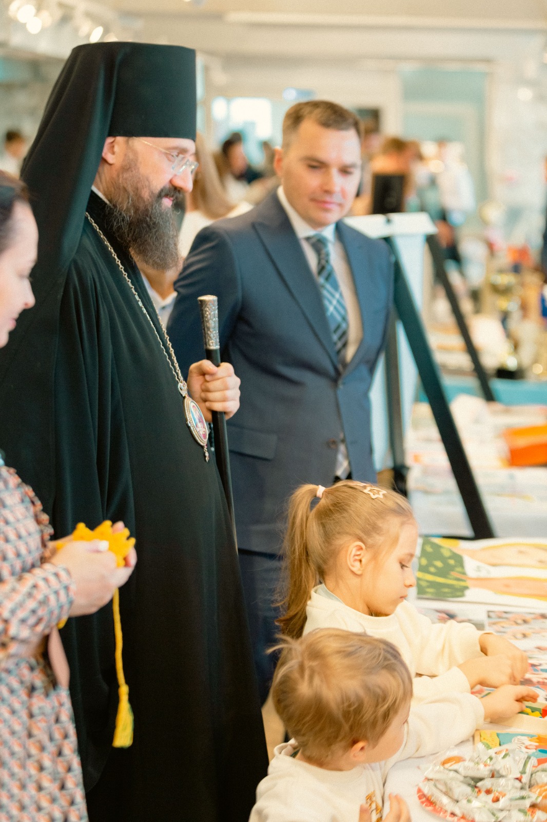 Глава Норильска, Архипастырь и представители Администрации города осмотрели семейные павильоны выставки и пообщались с участниками мероприятий.