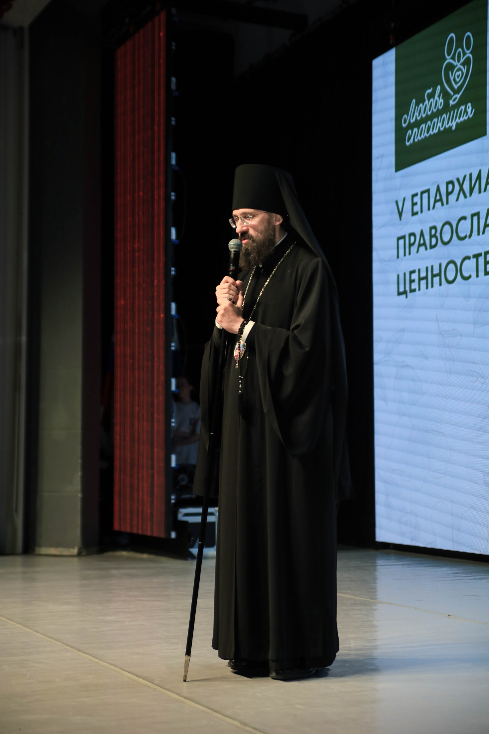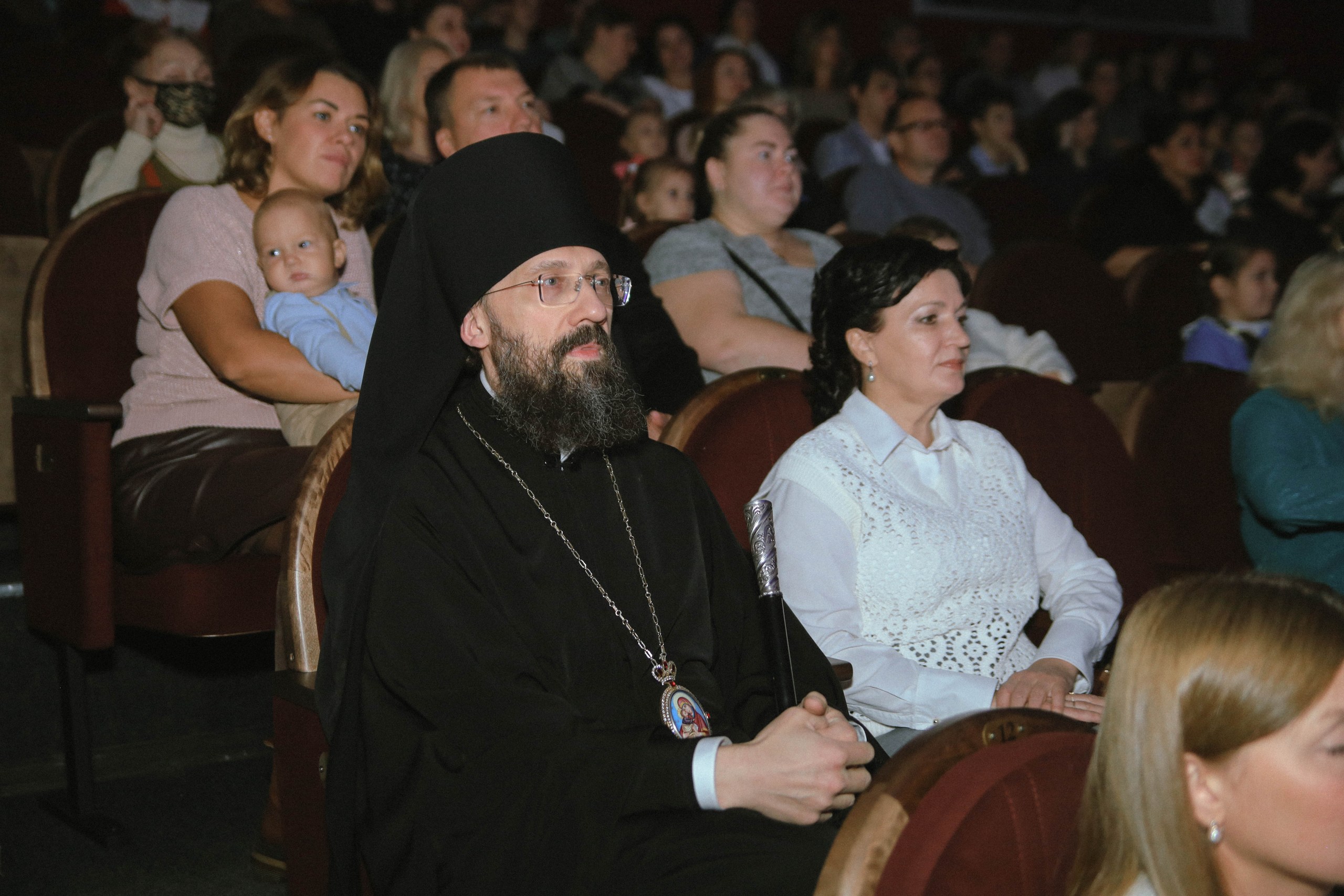 На сцене зала епископ Агафангел и Наталья Коростелева обратились к присутствующим с приветственными словами.