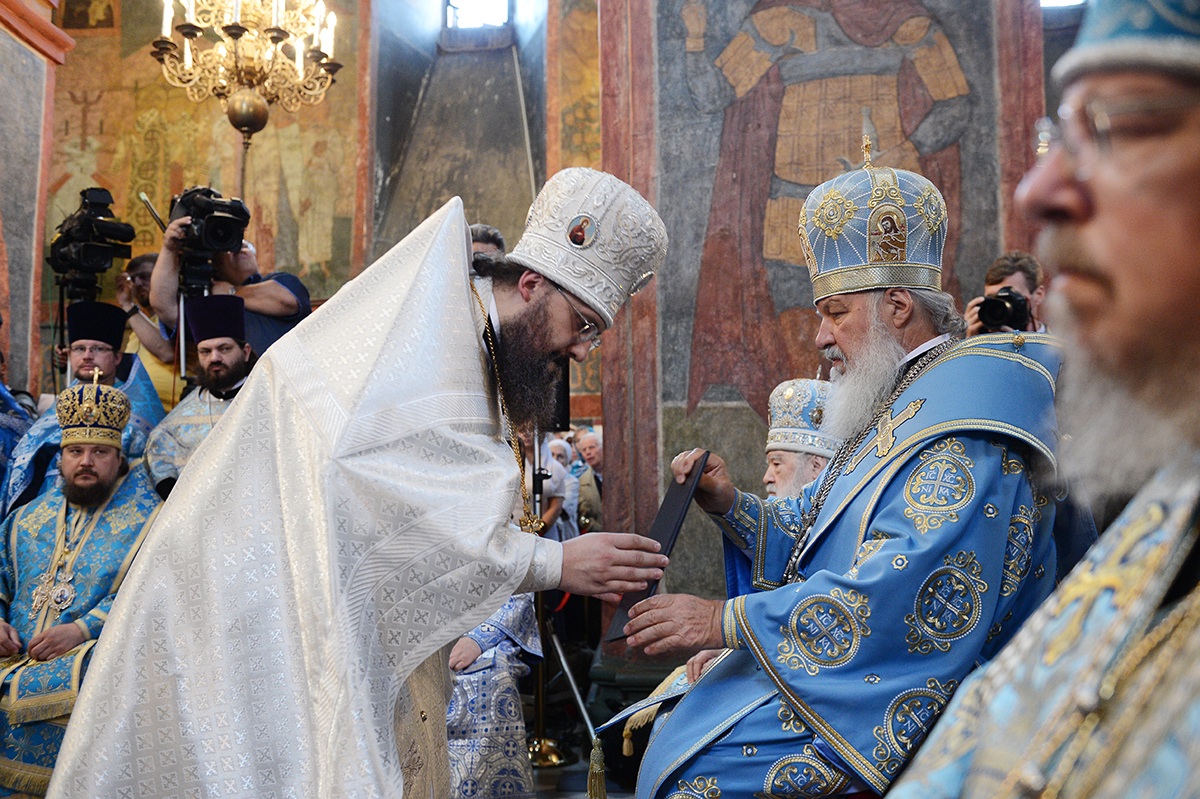 За Божественной литургией была совершена хиротония архимандрита Агафангела (Дайнеко) во епископа Норильского и Туруханского (Красноярская митрополия).