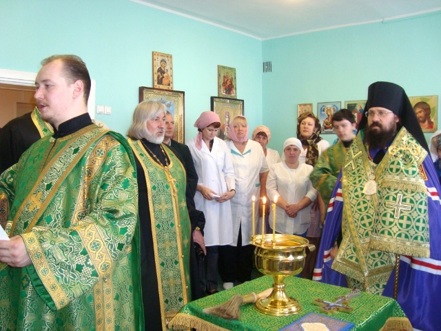 Владыка поздравил молящихся с днем празднования памяти святого Сергия Радонежского, Днем города и освящением часовни, а также поблагодарил всех, кто потрудился над созданием часовни и благословил ее актив на работу по духовной помощи больным, их родителям, а также медикам в их нелегком и благородном труде.
