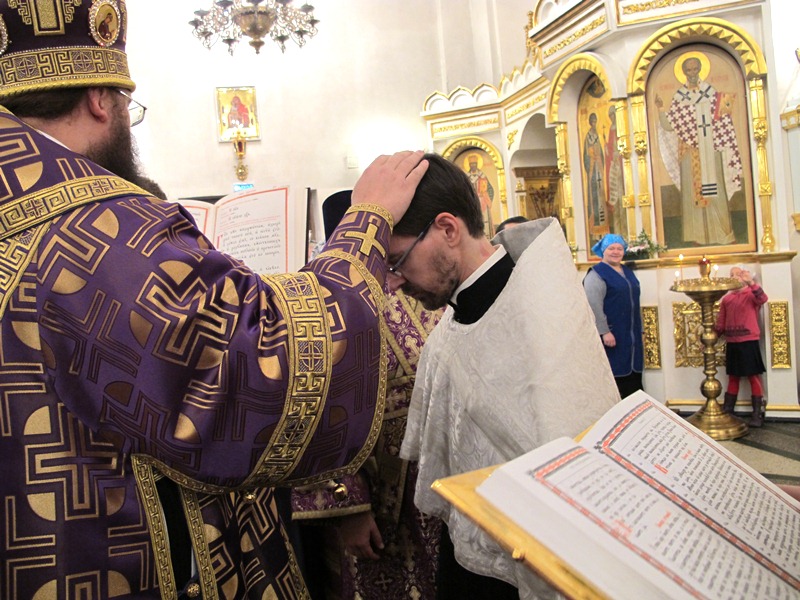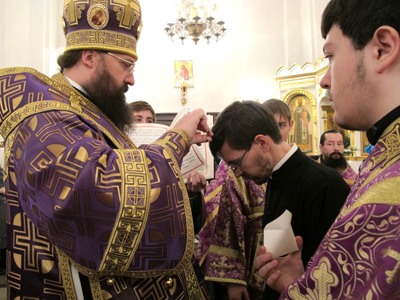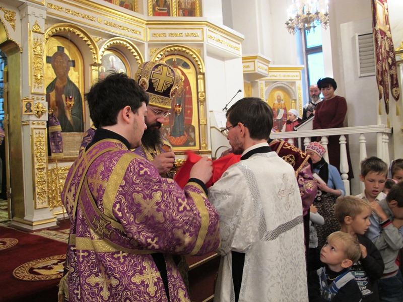 За Богослужением Владыка Агафангел совершил хиротесию во чтеца над пономарем Кафедрального собора Сергеем Андреевым.