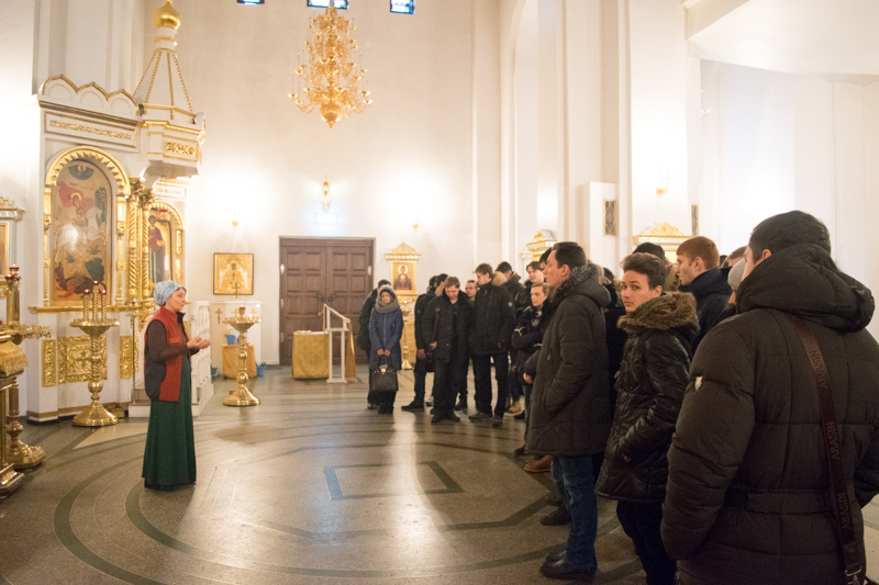 Многие ребята впервые перешагнули порог храма и с интересом рассматривали убранство и иконы собора. Ребята интересовались всем: что такое религия? Что такое православие? Почему Русь называют СВЯТОЮ? Как можно помолится об учебе? Почему и нужно ли крестить детей в детстве? Существует ли перерождение людей? Юноши-мусульмане интересовались историей и культурой православного прихода здесь на Севере. Беседа получилась интересной, содержательной и разноплановой.