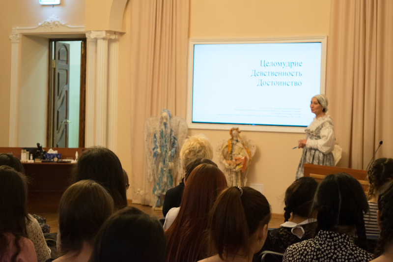 «Семейная жизнь и рождение детей», «Аборты и здоровье женщины» на все эти вопросы девушкам дали ответы руководитель Орелигиозного образования и катехизации Норильской епархии, мама шестерых детей Пучканева Татьяна Николаевна; директор родильного дома и старшая сестра Сестричества милосердия во имя святой мученицы Елисаветы Ласточкина Татьяна Владимировна.