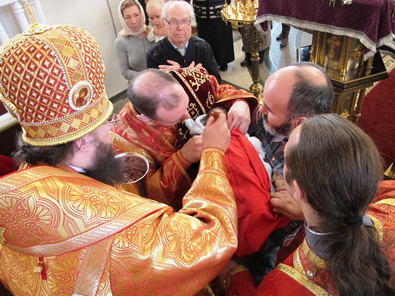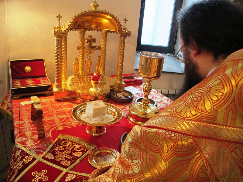После сугубой ектеньи Владыка совершил молитву о мире на Украине.
