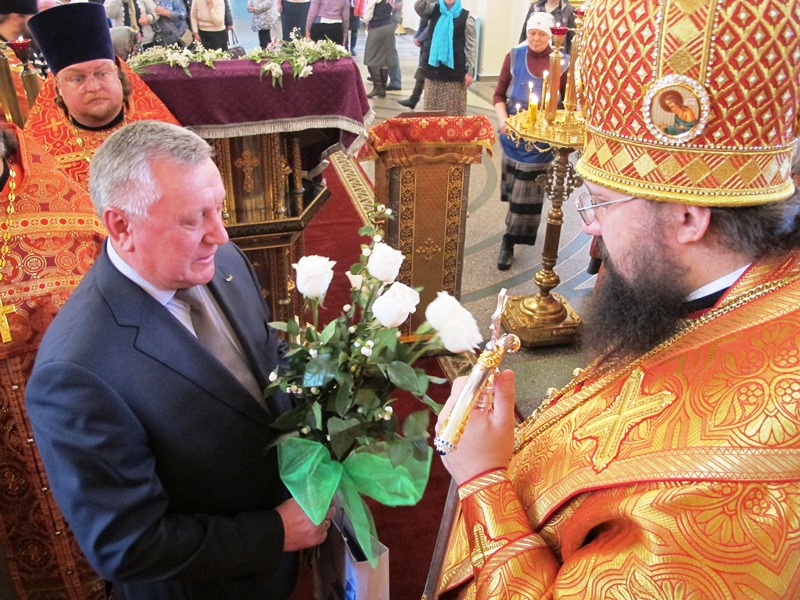 От горно-металлургической компании «Норильский Никель», которая является градообразующей в городе Норильске, Преосвященнейшего Владыку приветствовал директор департамента безопасности Заполярного филиала «Норникеля» Юрий Иннокентьевич Авдеев, который передал Владыке поздравления руководства компании.