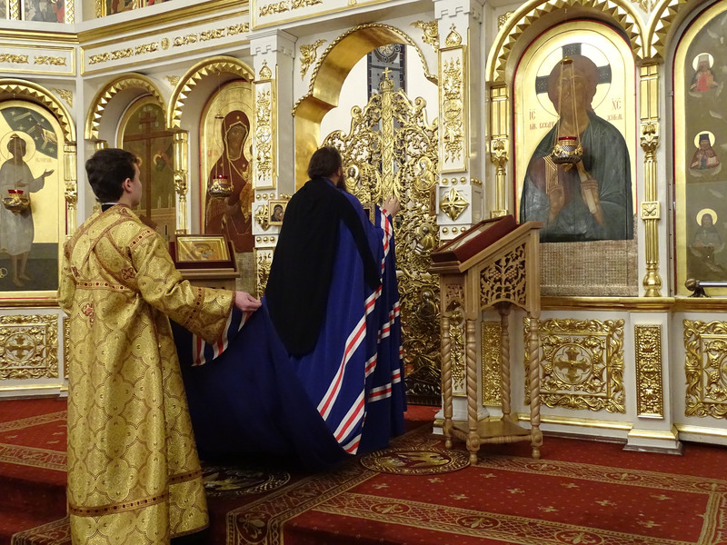 Его Преосвященству сослужили: секретарь Норильской епархии иеромонах Герман (Мельников); благочинный Норильского округа протоиерей Владимир Иванов; председатель епархиального отдела по взаимодействию с вооруженными силами и правоохранительными структурами протоиерей Димитрий Харцых; соборное духовенство.