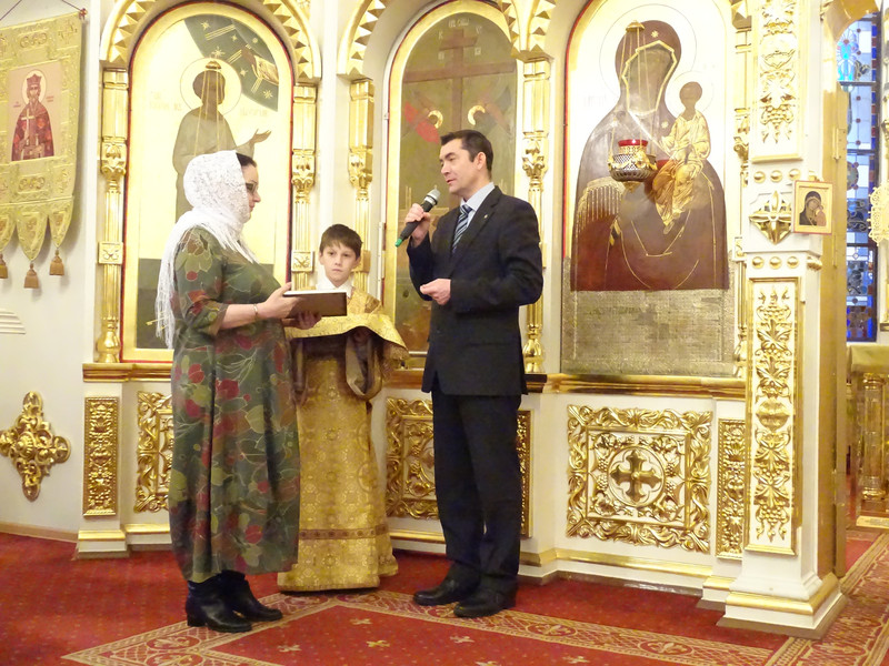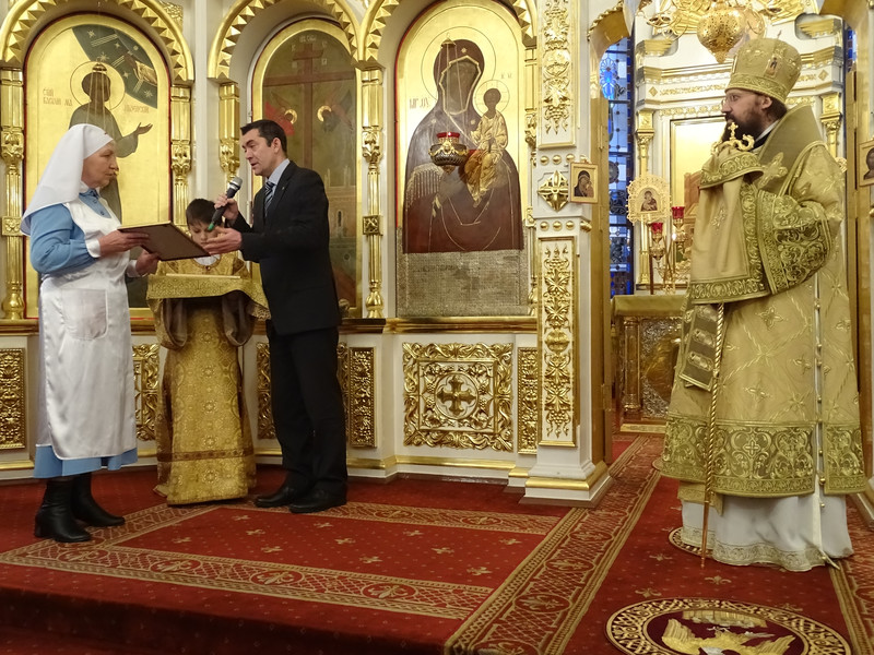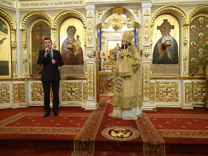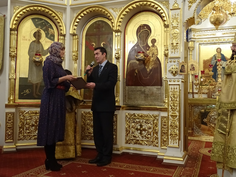 После проповеди Глава города Норильска вручил епископу Агафангелу благодарственное письмо за личный вклад в становление духовности и укреплению христианских ценностей на территории муниципального образования город Норильск. Сергей Иванович Щеглов вручил Владыке благодарственное письмо от Администрации Губернатора Красноярского края за большой вклад в развитие православной духовной культуры и укрепление межнационального мира и согласия.