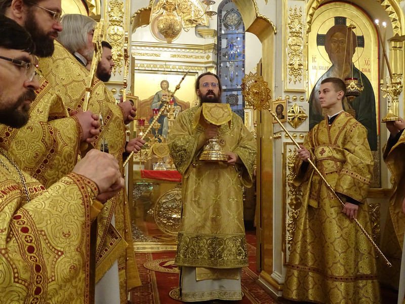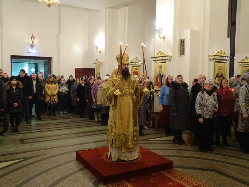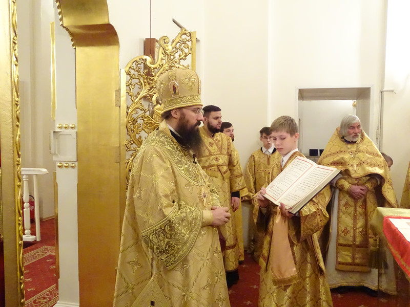 На кануне Архипастырь в сослужении духовенства совершил Всенощное бдение.