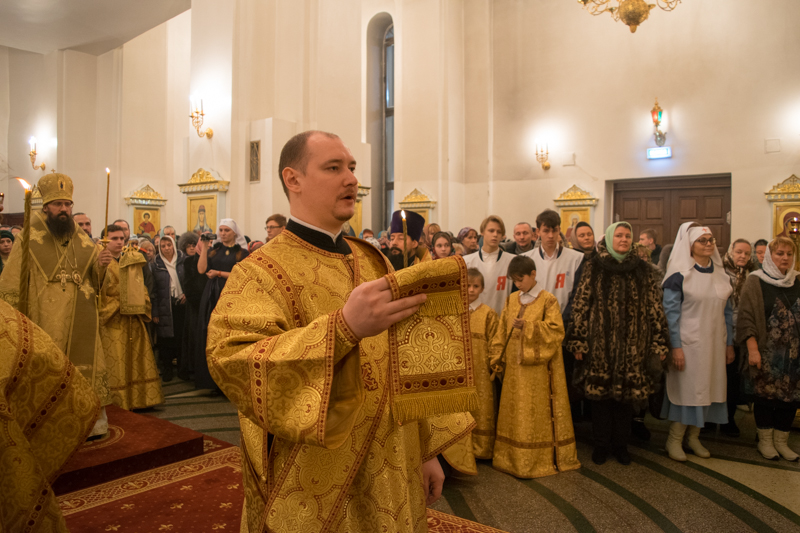 Его Преосвященству сослужили: секретарь Норильской епархии иеромонах Герман (Мельников); благочинный Норильского округа протоиерей Владимир Иванов; председатель епархиального отдела по взаимодействию с вооруженными силами и правоохранительными структурами протоиерей Димитрий Харцыз; соборное духовенство.
