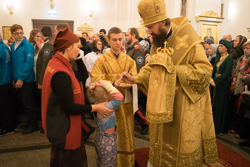После чтения Святого Евангелия Владыка помазал многочисленных молящихся освященным елей.