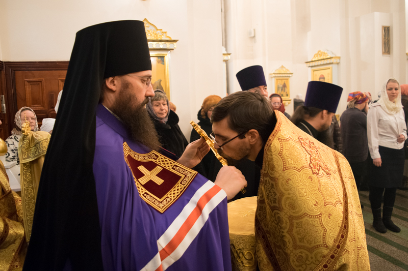 Его Преосвященству сослужили: секретарь Норильской епархии иеромонах Герман (Мельников); благочинный Норильского округа протоиерей Владимир Иванов; председатель епархиального отдела по взаимодействию с вооруженными силами и правоохранительными структурами протоиерей Димитрий Харцых; соборное духовенство.
