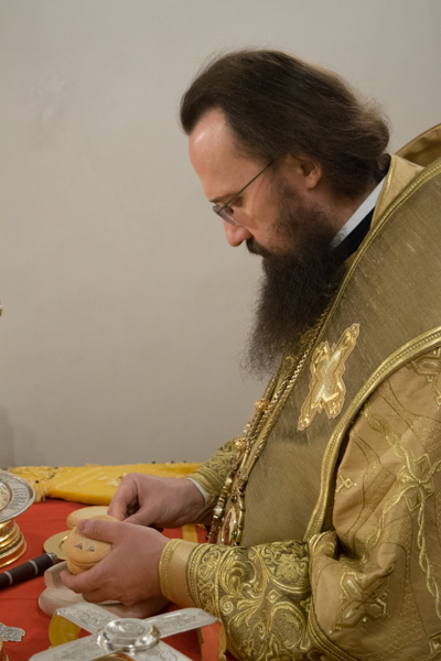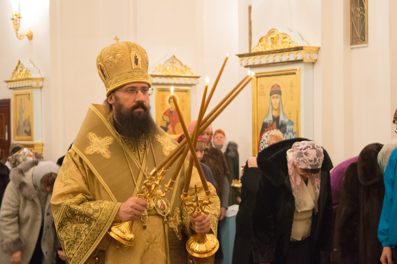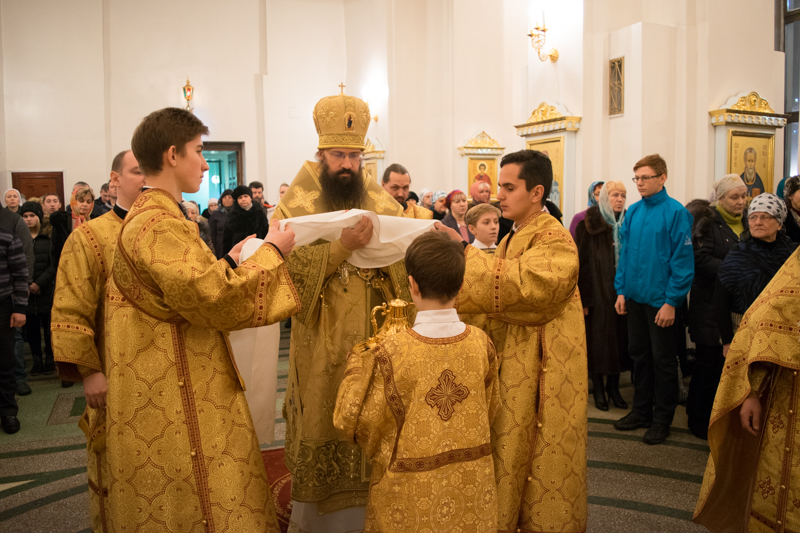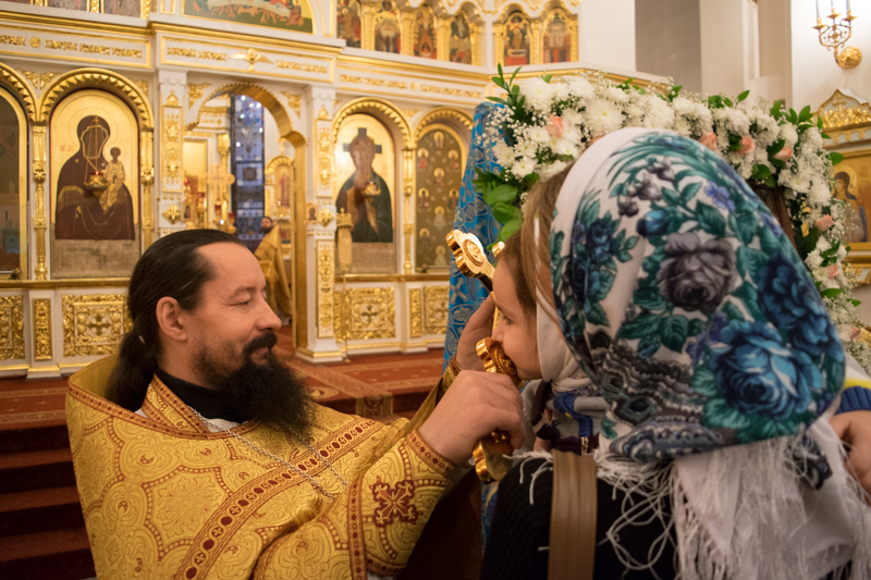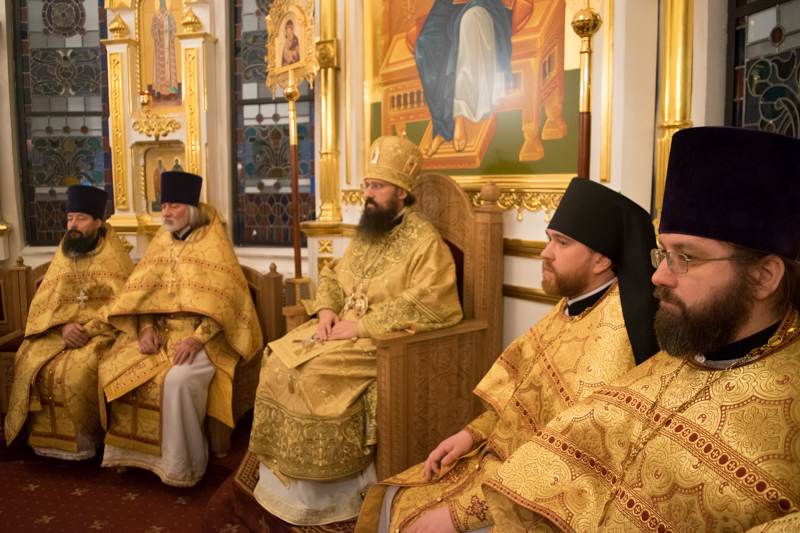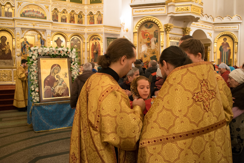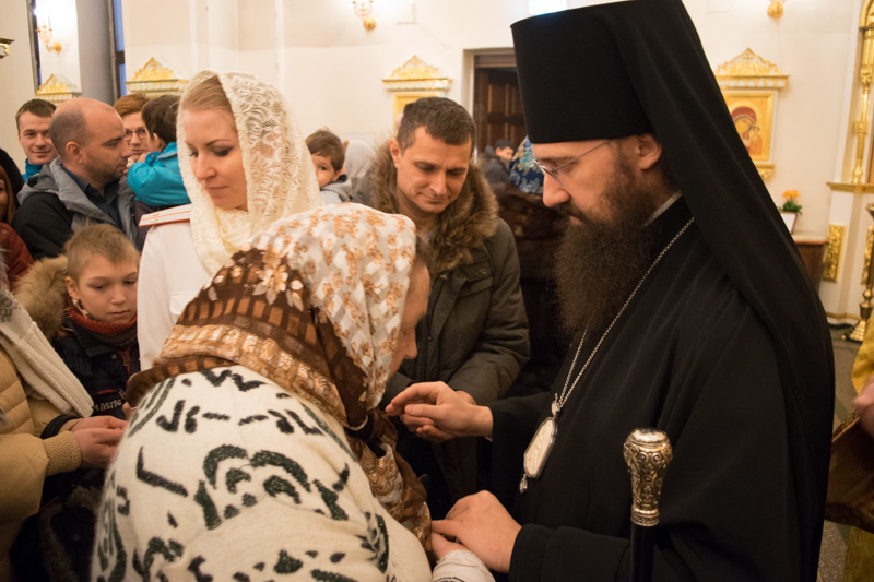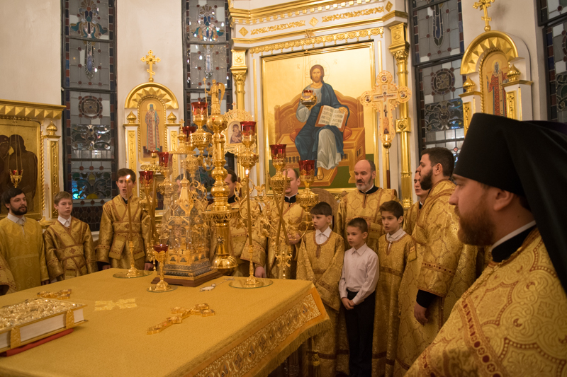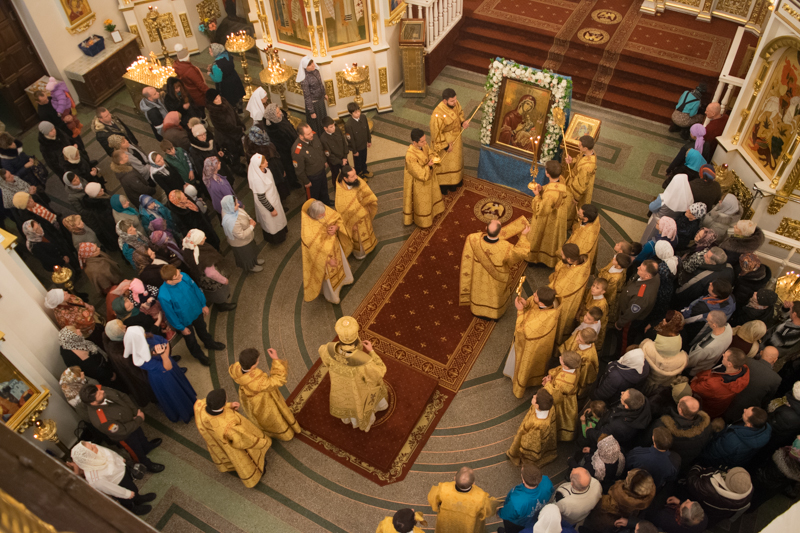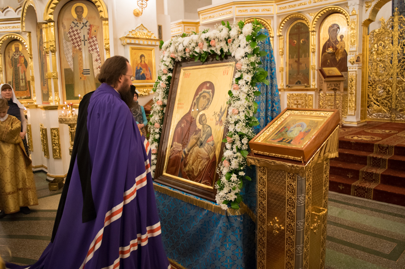 После Причастия епископ Агафангел в сослужении духовенства совершил славление перед иконой Божией Матери "Всемилостивая Заступница".