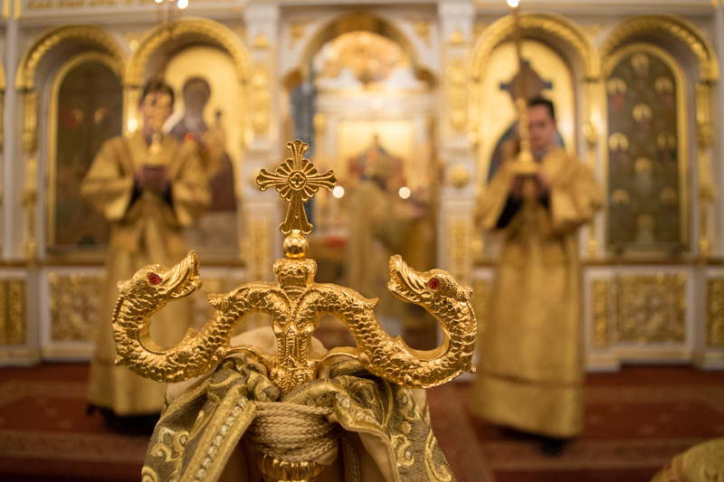За богослужением возносились сугубые молитвы о мире на Украине.