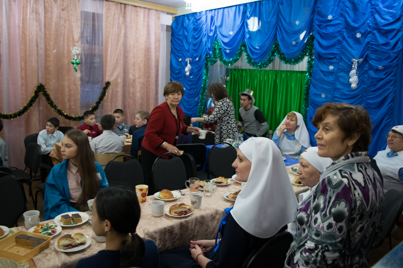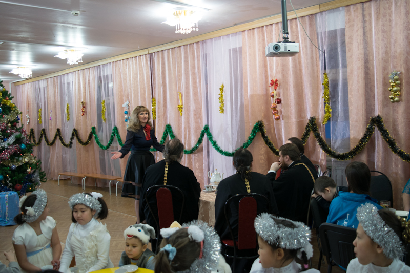 Владыка с гостями приехал не только для того, чтобы поздравить детей с наступающими праздниками Рождества Христова. Гости приехали с подарками в ответ на традиционные письма Ангелу, которые дети пишут в ожидании Рождества Христова. Каждый ребенок получил желанный подарок. В благодарность ребятишки подарили гостям большой рождественский концерт. Они читали рождественские стихи, танцевали вальс, пели частушки, исполняли новогодние песни.