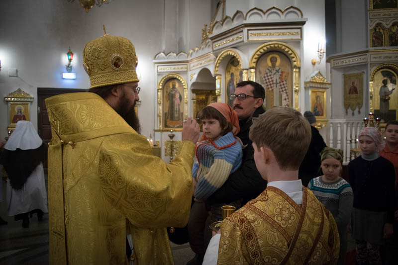 31 декабря 2016 года, в канун гражданского Нового года, Преосвященнейший Агафангел, епископ Норильский и Туруханский совершил воскресное Всенощное бдение в кафедральном соборе в честь иконы Божией Матери «Всех скорбящих Радость» города Норильска.