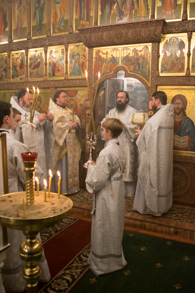Его Преосвященству сослужили: секретарь Норильской епархии иеромонах Герман (Мельников); настоятель храма Живоначальной Троицы района Талнах города Норильска протоиерей Даниил Тихонов; штатный клирик храма Живоначальной Троицы иерей Сергий Кузьменко.