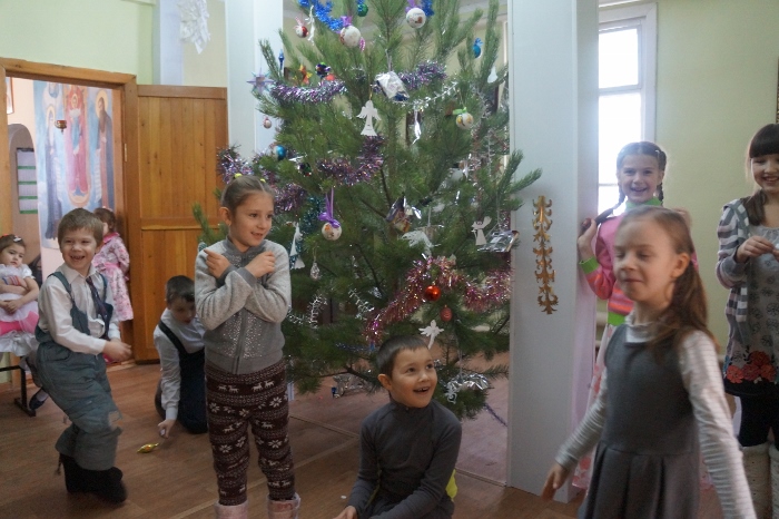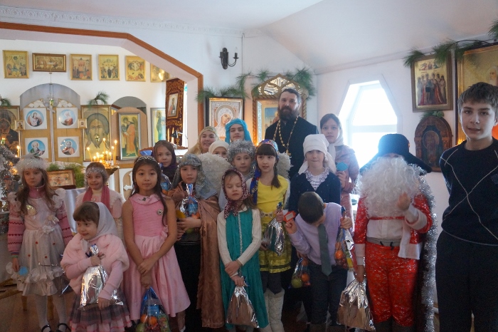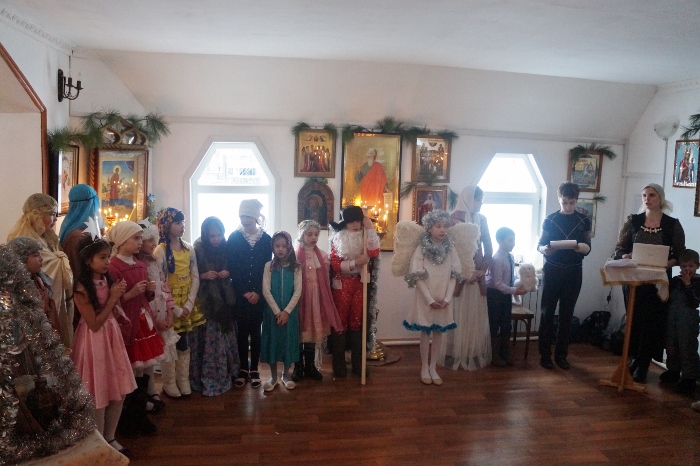А 7 января прихожане храма собрались на праздничный молебен, после которого воспитанники воскресной школы порадовали всех подготовленным представлением и подарили всем зрителям сделанные своими руками звездочки с цитатами из Евангелия, а сами участники получили Рождественские подарки.