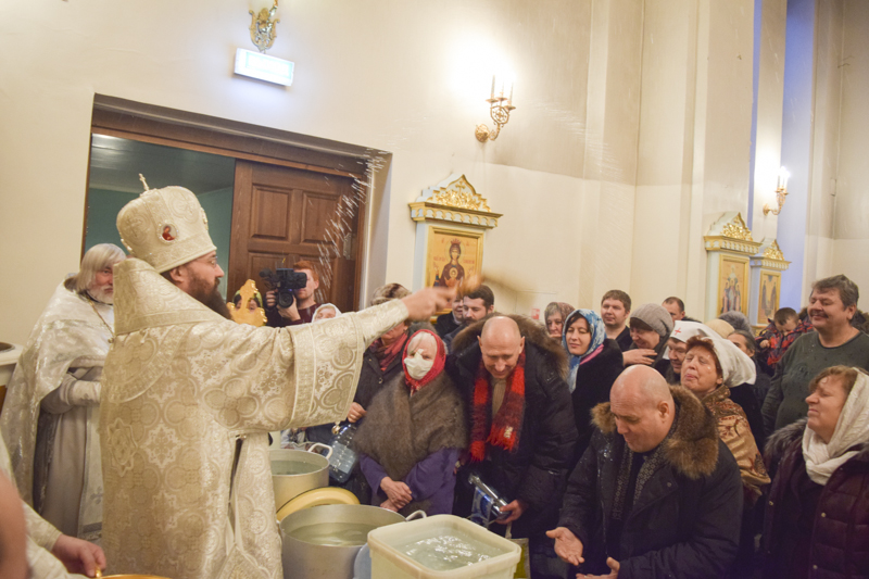 По окончании Литургии Василия Великого епископ Агафангел в сослужении духовенства совершил Великое освящение воды и окропил прихожан святой водой.