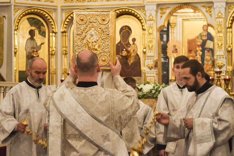 По окончании Богослужения духовенство во главе с Архипастырем совершили положенное славление.