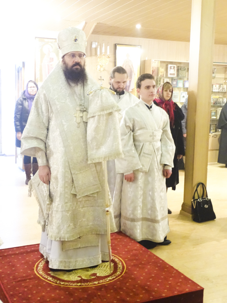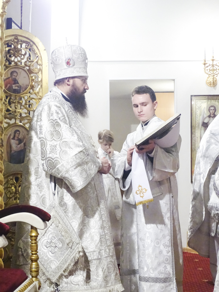 Его Преосвященству сослужили: секретарь Норильской епархии иеромонах Герман (Мельников); штатный клир кафедрального собора в честь иконы Божией Матери «Всех скорбящих Радость» города Норильска.