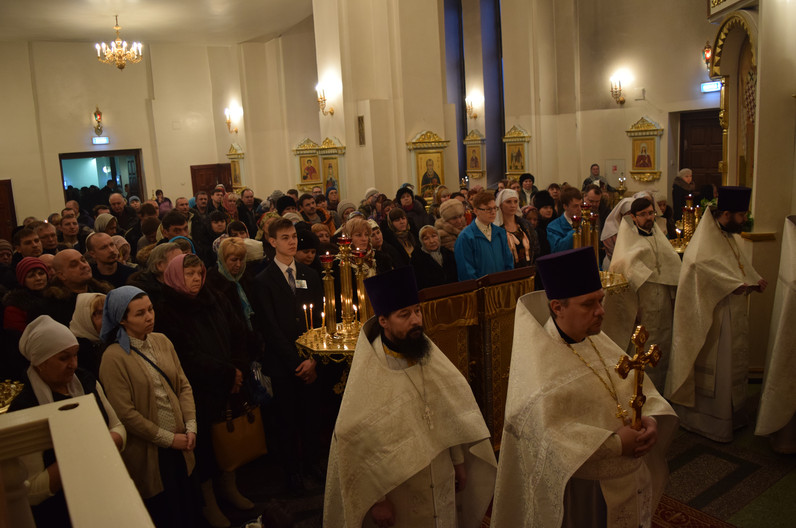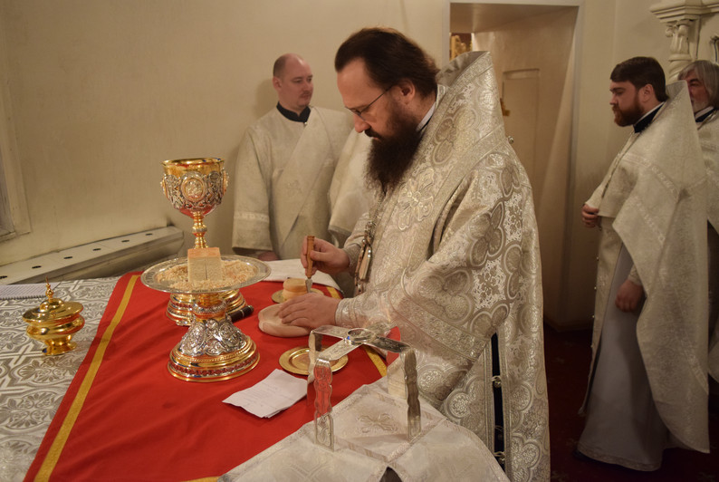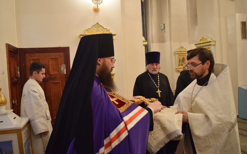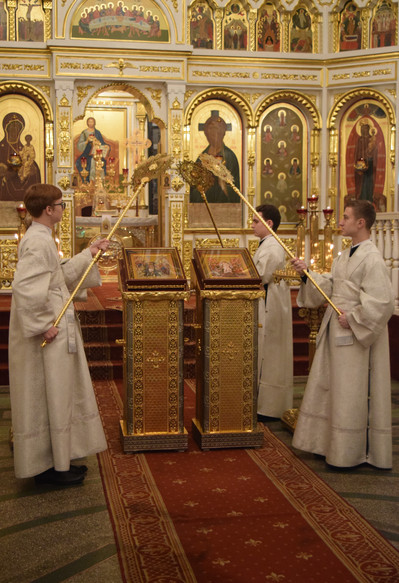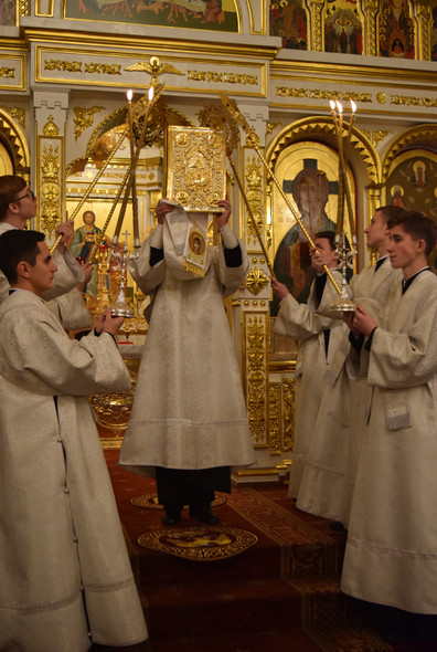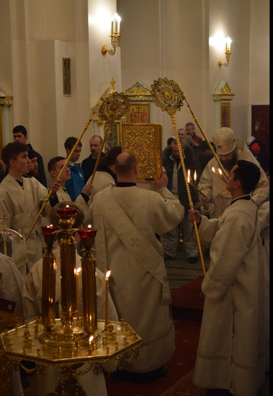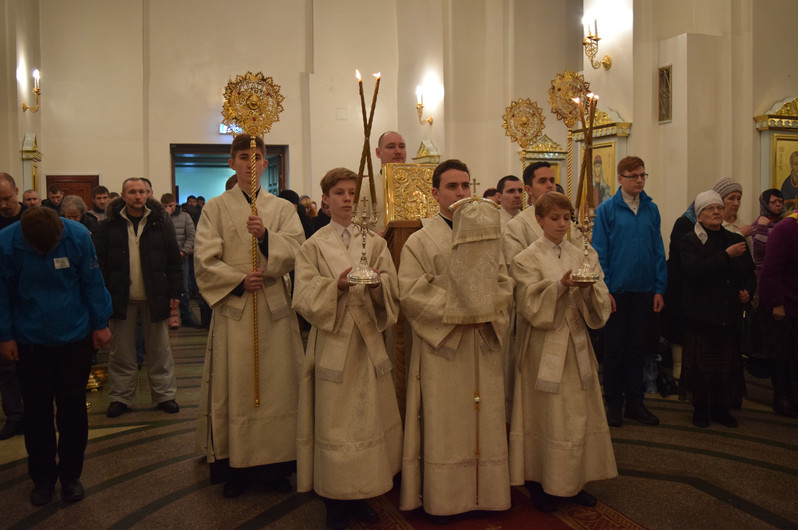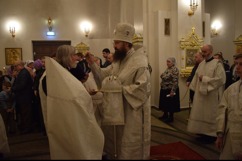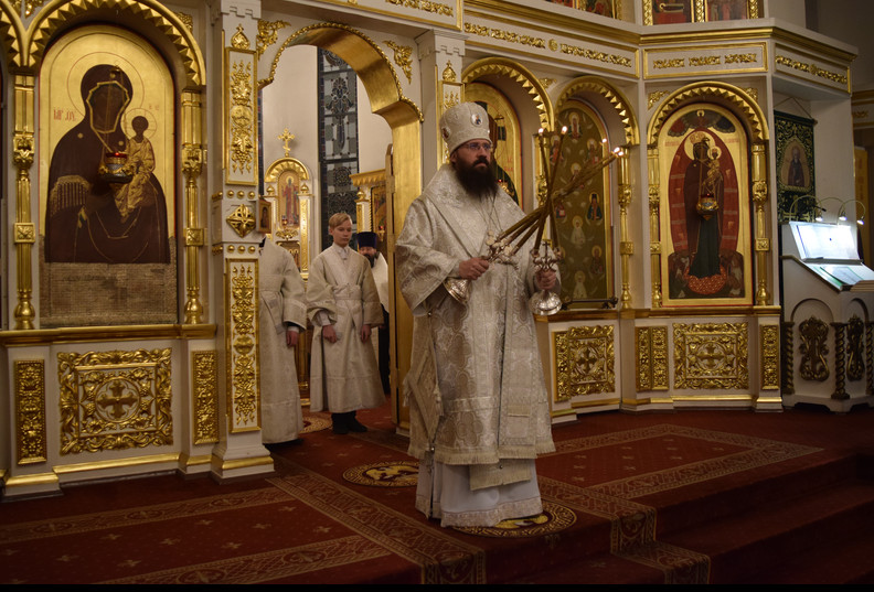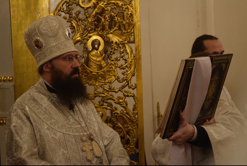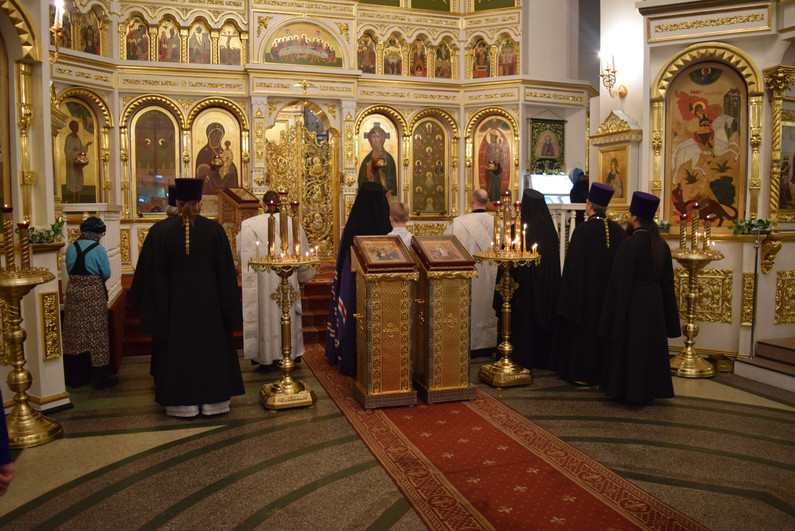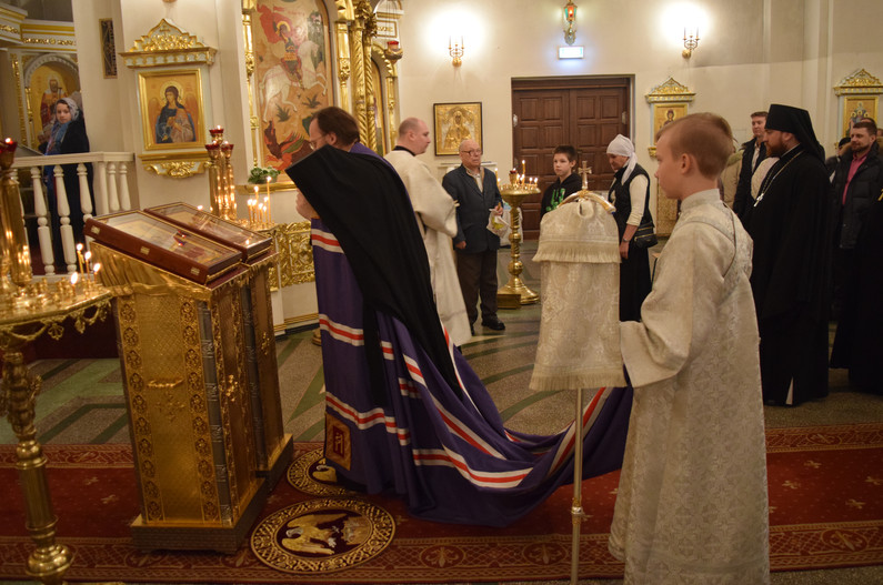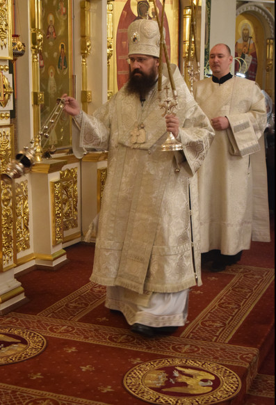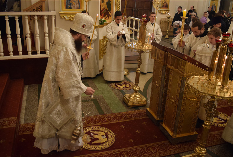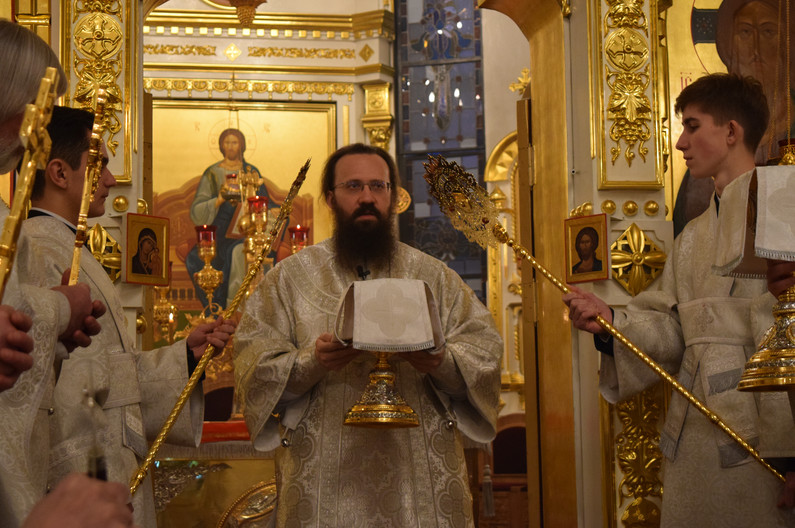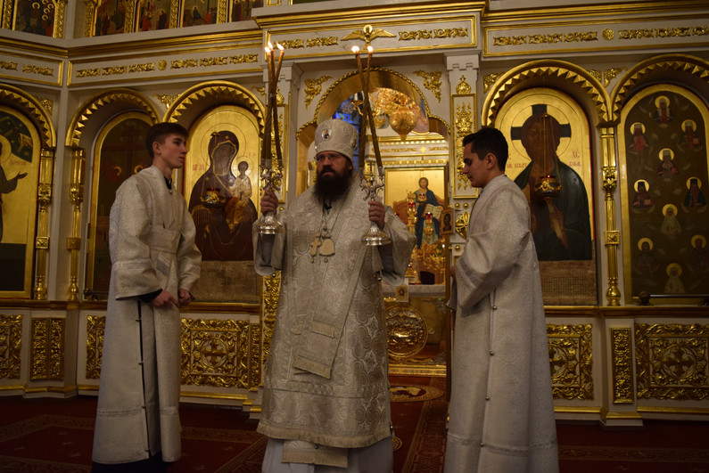 На кануне Архипастырь в сослужении духовенства совершил Всенощное бдение.