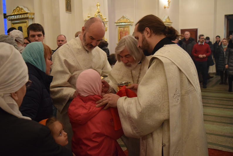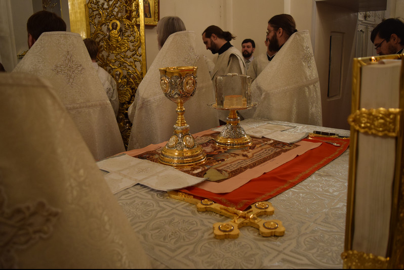 За богослужением возносились сугубые молитвы о мире на Украине.