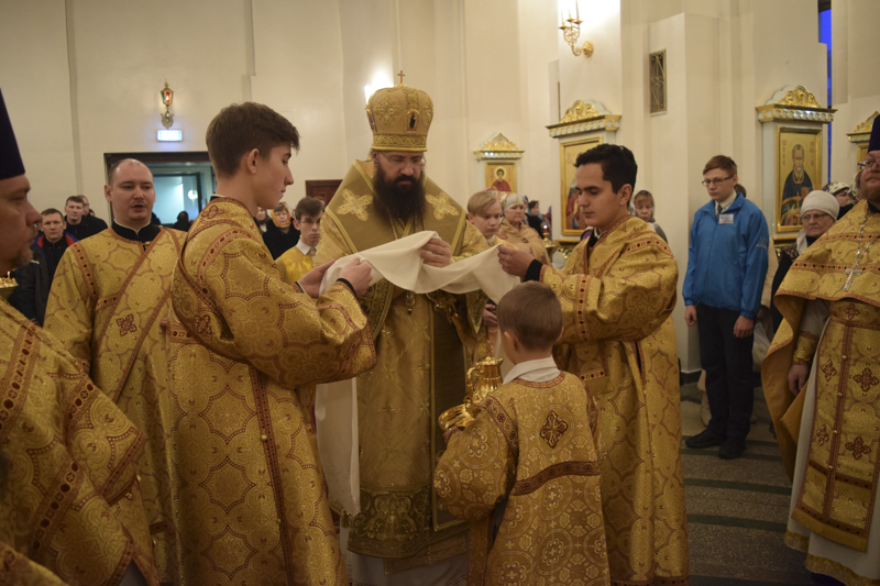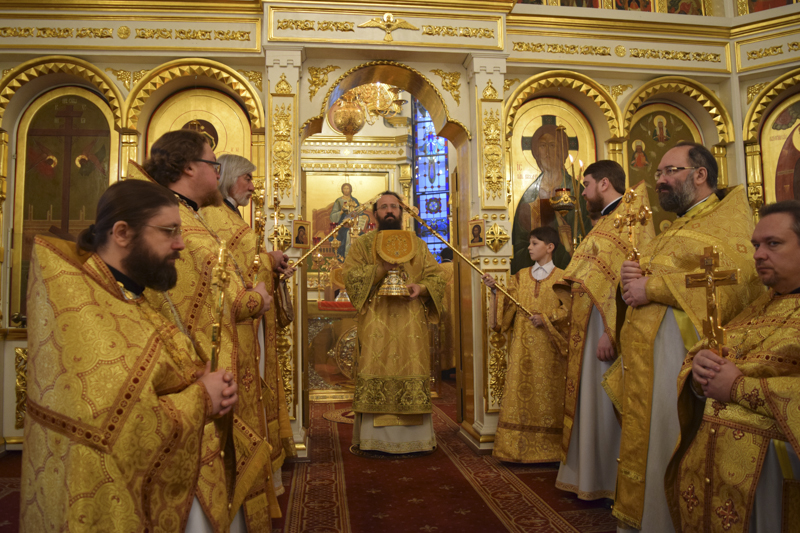 В завершении богослужения Архипастырь обратился к собравшимся со словами проповеди. Духовенство собора и прихожане поздравили Владыку с днем его тезоименитства.