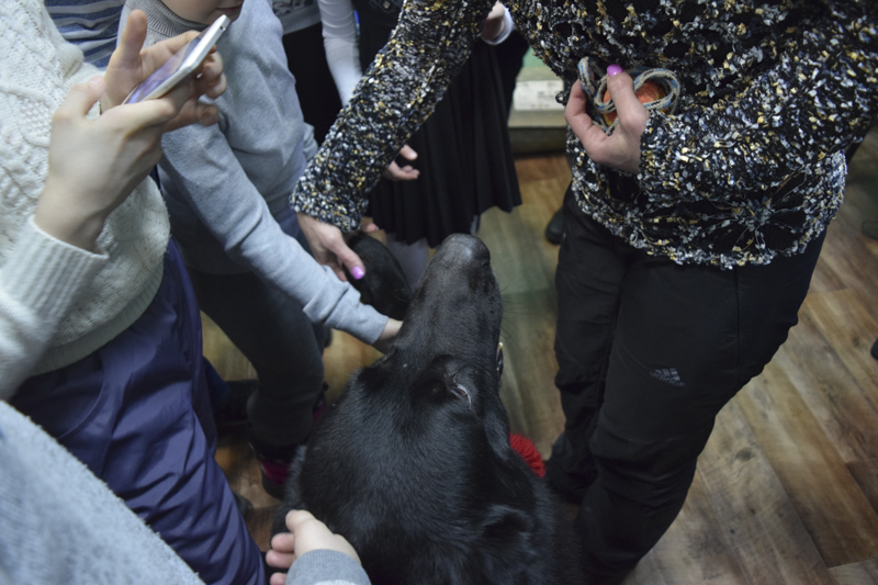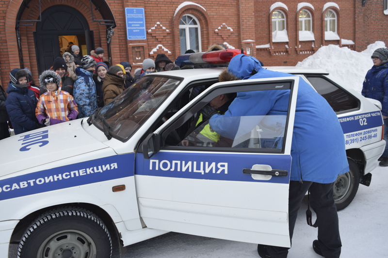 Каждый пришедший смог примерить военную экипировку, подержать в руках и даже собрать и разобрать несколько видов современного оружия в Отделе по взаимодействию с вооруженными силами и силовыми структурами. Полицейские города Норильска привели на праздник лучшую розыскную собаку Дюсю, которая показывала свое умение, давала всем погладить себя, а на прощанье подала лапу детворе, чем умножила всеобщее восхищение. Тот, кто не побоялся мороза, мог выйти в церковный двор и залезть внутрь самой настоящей полицейской машины.