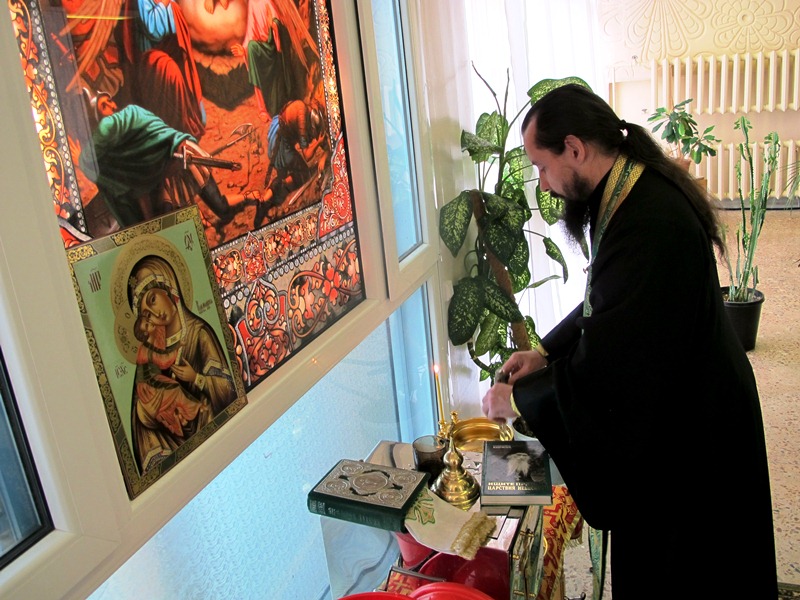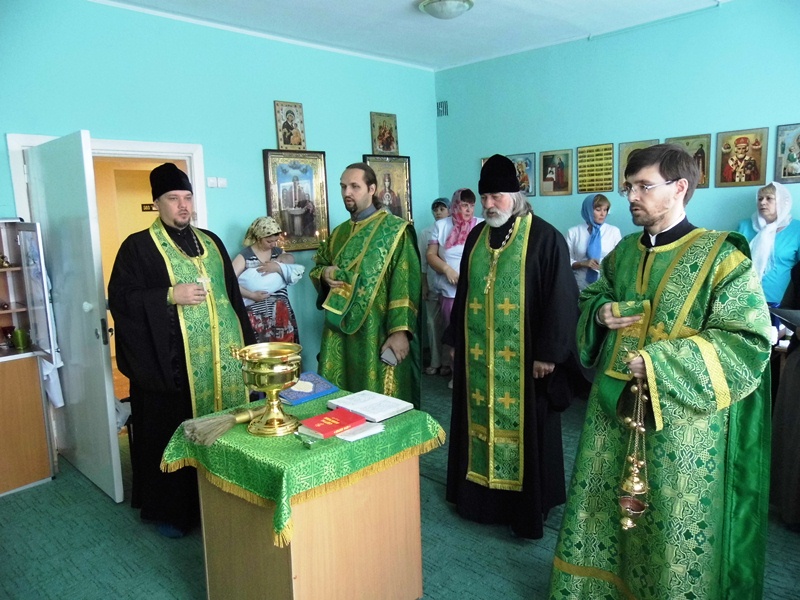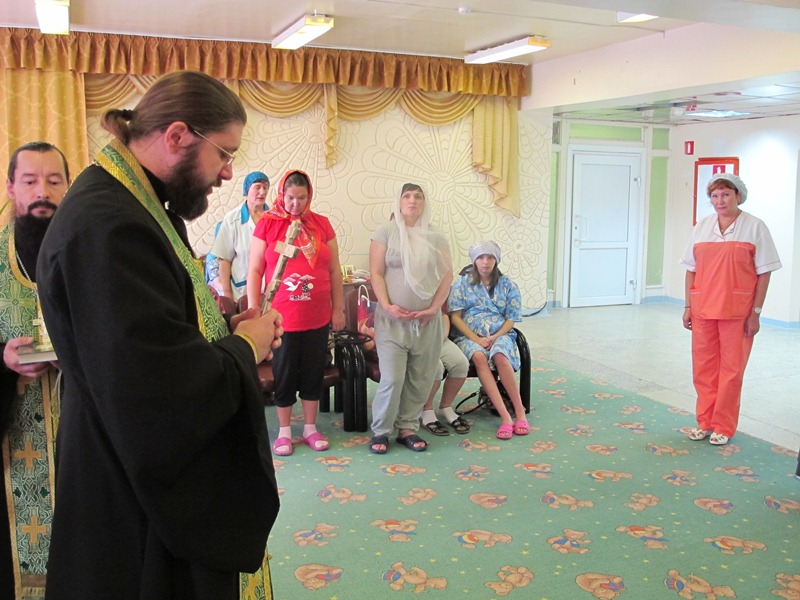 Также штатные клирики Кафедрального собора – иерей Алексий Пирогов и иерей Георгий Михайлов совершили молебен в Роддоме города Норильска.