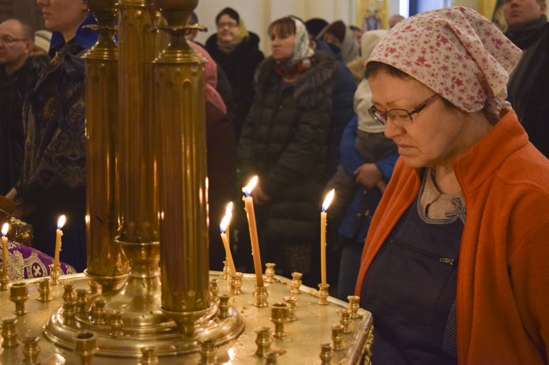 4 марта 2017 года, в субботу первой седмицы Великого поста, память священномученика Ермогена патриарха Московского и всея России, Преосвященный Агафангел, епископ Норильский и Туруханский совершил Божественную литургию в кафедральном соборе в честь иконы Божией Матери «Всех скорбящих Радость» города Норильска.