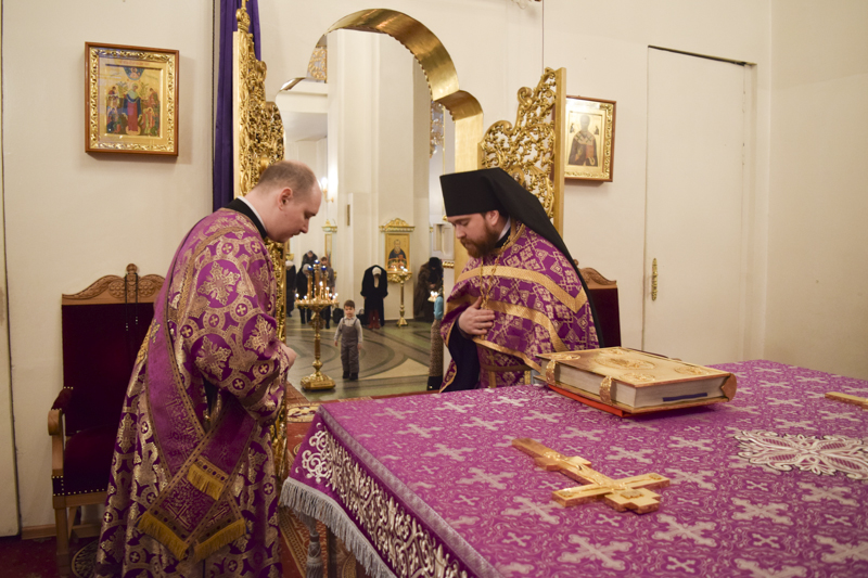 Его Преосвященству сослужили: секретарь Норильской епархии иеромонах Герман (Мельников); благочинный Норильского округа протоиерей Владимир Иванов; духовенство кафедрального собора.