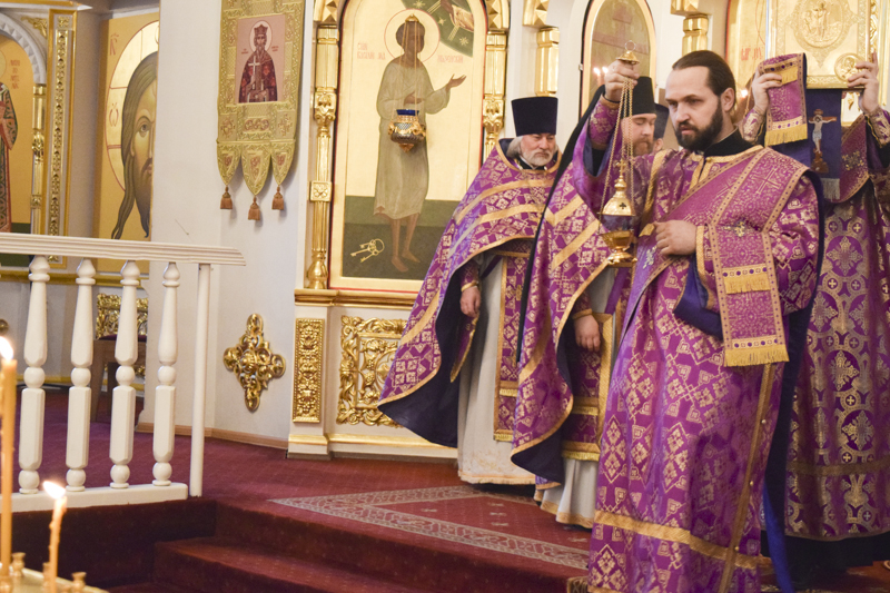 После причастия мирян епископ Агафангел в сослужении духовенства совершил славление.