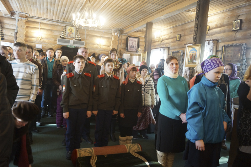 Его Преосвященству сослужили: секретарь Норильской епархии иеромонах Герман (Мельников); настоятель храма Святой Троицы района Талнах протоиерей Даниил Тихонов; руководитель епархиального отдела по взаимодействию с силовыми структурами РФ протоиерей Димитрий Харцыз; заместитель руководителя епархиального отдела по взаимодействию с казачеством, штатный клирик храма Святой Троицы иерей Сергий Кузьменко.