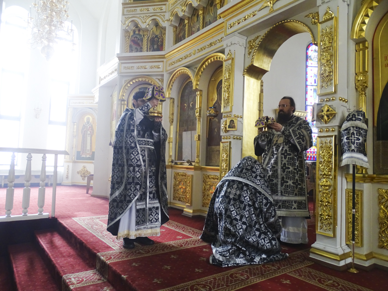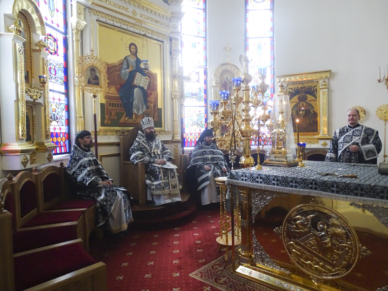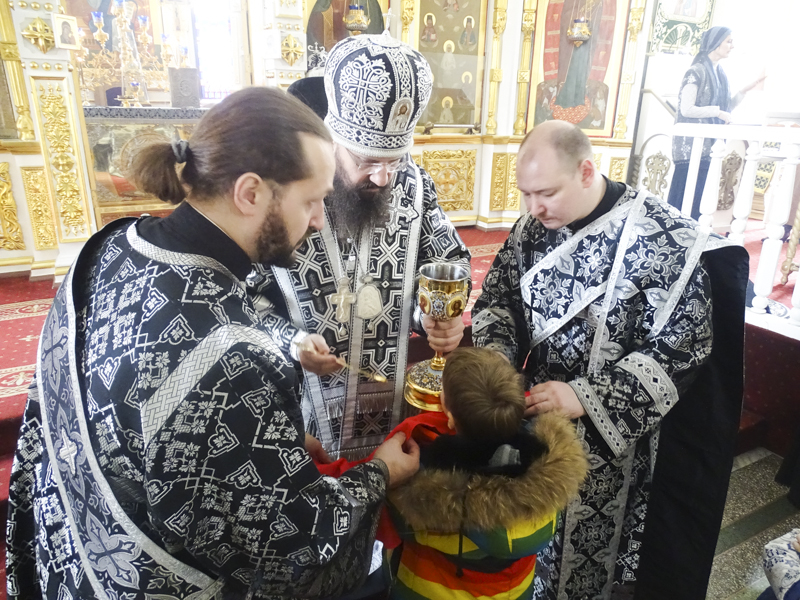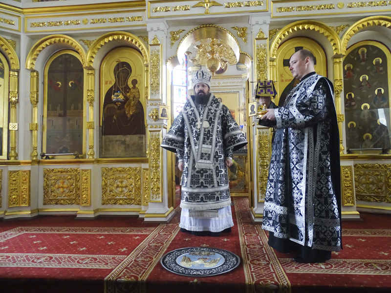 Его Преосвященству сослужили: секретарь Норильской епархии иеромонах Герман (Мельников); штатные клирики кафедрального собора.