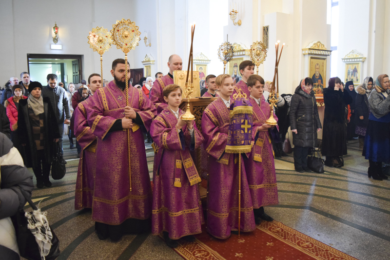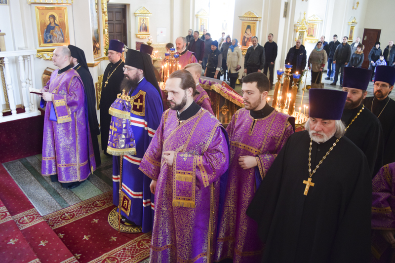 Его Преосвященству сослужили: секретарь Норильской епархии иеромонах Герман (Мельников); благочинный Норильского округа протоиерей Владимир Иванов; штатное духовенство кафедрального собора.