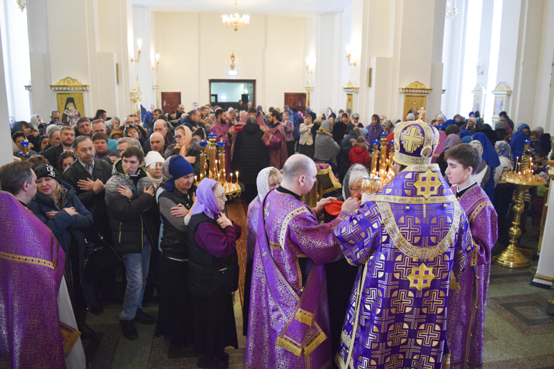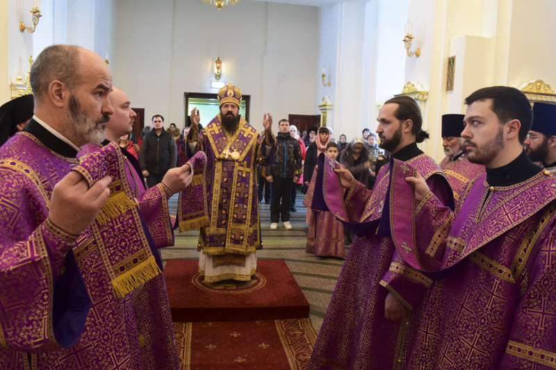 За Богослужением были вознесены особые прошения на сугубой ектении и прочитана молитва о мире на Украине.