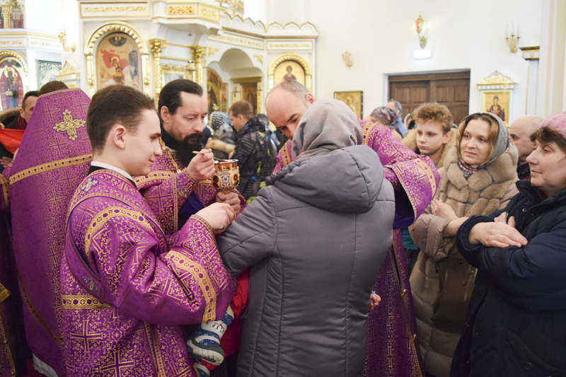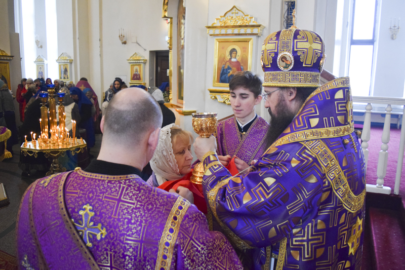 По окончании богослужения Архипастырь обратился к верующим со словами назидания и поздравил многочисленных причастников с принятием Святых Христовы Тайн.