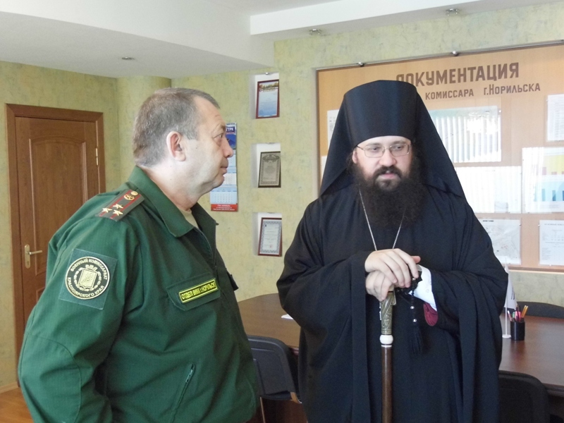 16 октября 2014 года Его Преосвященство, Преосвященнейший Агафангел, Епископ Норильский и Туруханский совершил чин освящения военного комиссариата г. Норильска в присутствии военного комиссара Нестерова В.В. и сотрудников учреждения. Владыку Агафангела сопровождали: исполняющий обязанности секретаря Норильской епархии иеромонах Герман (Мельников), председатель епархиального отдела по взаимодействию с вооруженными силами и правоохранительными органами протоиерей Димитрий Харцыз.