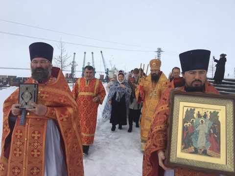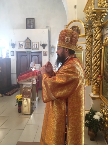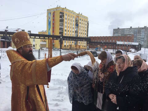 Его Преосвященству сослужили: секретарь Норильской епархии иеромонах Герман (Мельников); благочинный Таймырского округа настоятель храма протоиерей Георгий Ицков; штатный священник храма иерей Роман Шагиев.