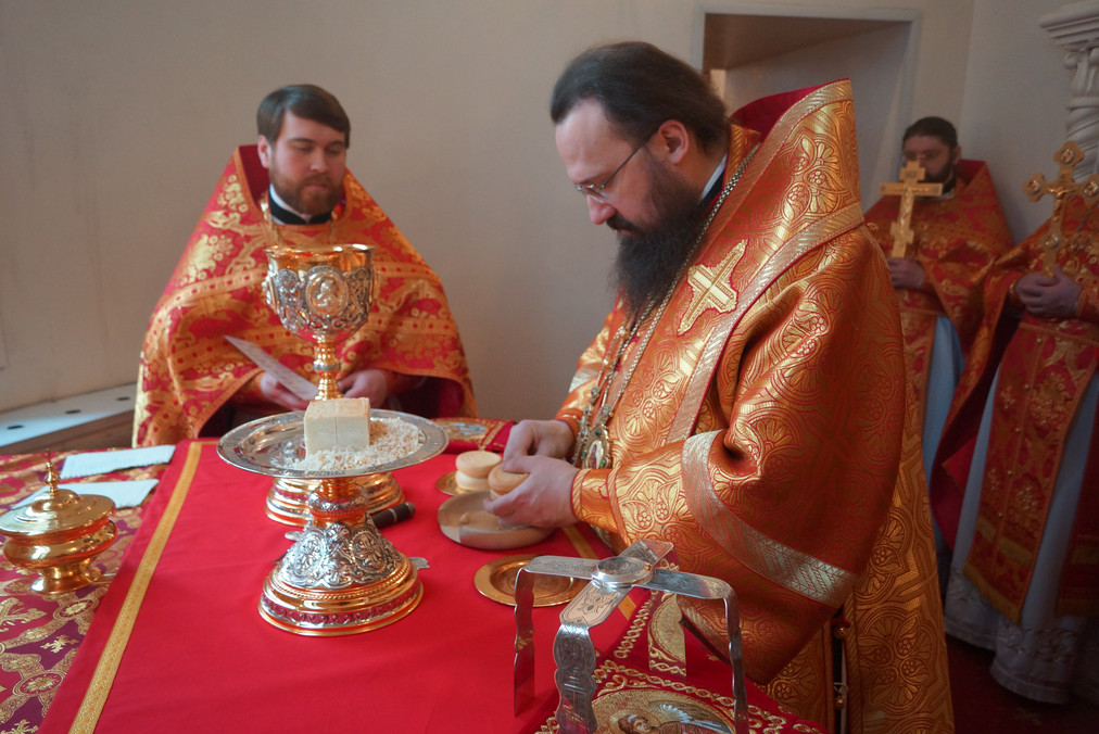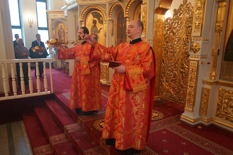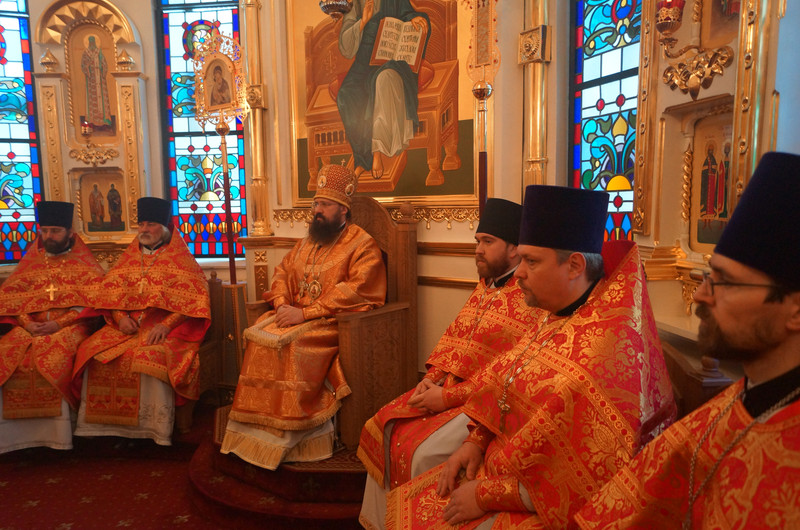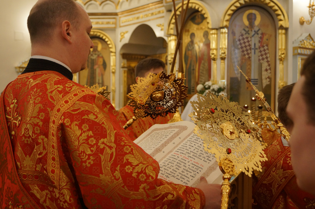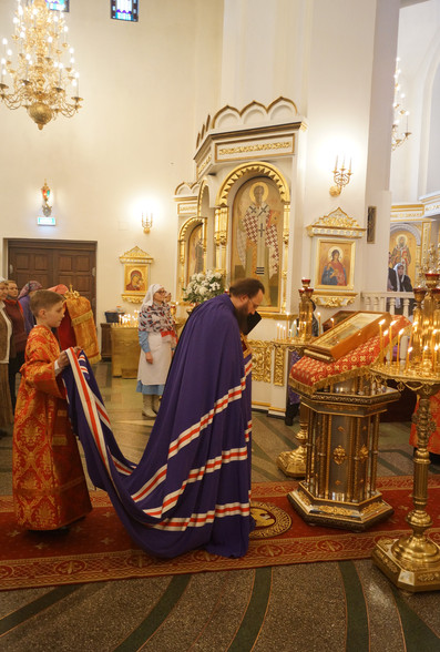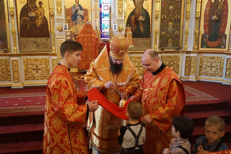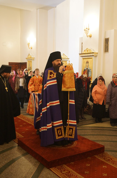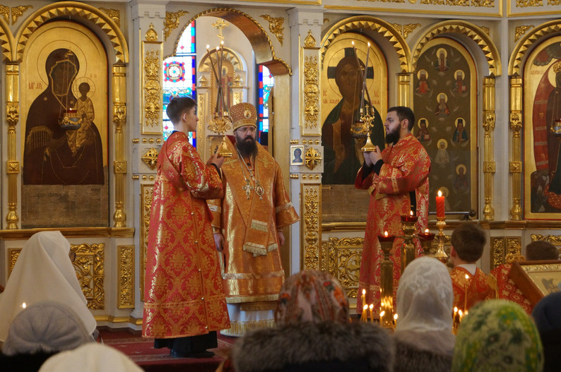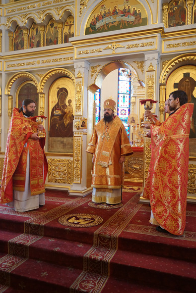 Его Преосвященству сослужили: секретарь Норильской епархии иеромонах Герман (Мельников); благочинный Норильского округа протоиерей Владимир Иванов; председатель епархиального отдела по взаимодействию с силовыми структурами протоиерей Димитрий Харцыз; штатное духовенство собора.