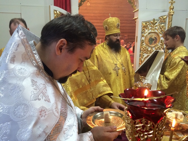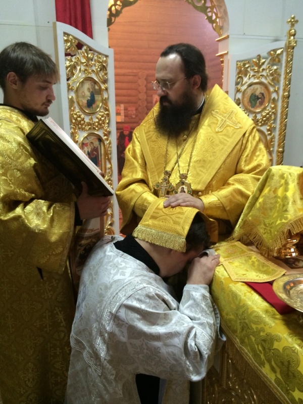 После Великого входа была совершена иерейская хиротония клирика Свято-Никольского храма г.п. Диксон Норильской епархии – диакона Романа Трофимова.