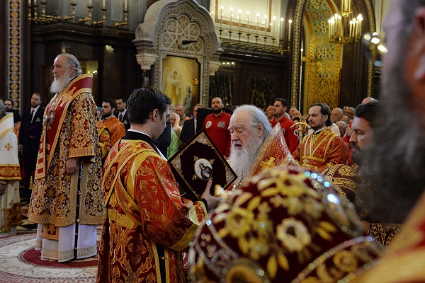 Были совершены славление Кириллу и Мефодию и благодарственный молебен с молитвами о тезоименитом Святейшем Патриархе Кирилле. Благодарственную молитву прочитал митрополит Крутицкий и Коломенский Ювеналий.