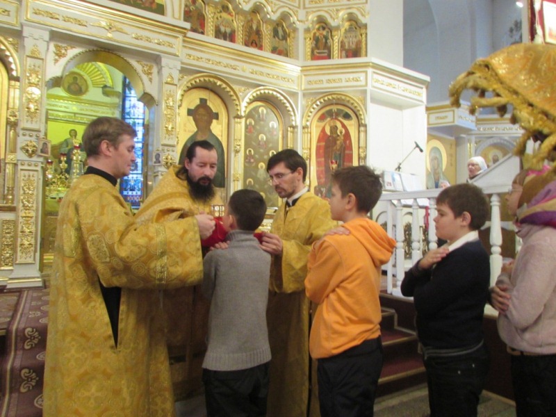 22 октября 2014 года Кафедральный собор города Норильска принимал школьников 4-ой городской гимназии, начавших в этом учебном году обучение по курсу Основ православной культуры. Во время первых уроков дети под руководством своего учителя, Ларисы Станиславны Нарушевич, изучали устройство православного храма и Таинства Церкви. А затем, с согласия родителей, пришли в собор всем классом, чтобы увидеть то, с чем они знакомились по книгам и учебным пособиям. А их одноклассники из верующих семей непосредственно участвовали в Таинствах Исповеди и Причастия. Ребята, пришедшие в храм впервые, увидели иконы с именами знакомыми по истории: креститель Руси князь Владимир, великая княгиня Ольга, Дмитрий Донской, Александр Невский. Для них это было зримым подтверждением того, что история Церкви – это составная часть истории России.