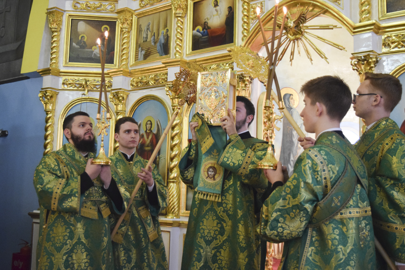 На богослужении были освящены хлеб, вино, пшеница и елей