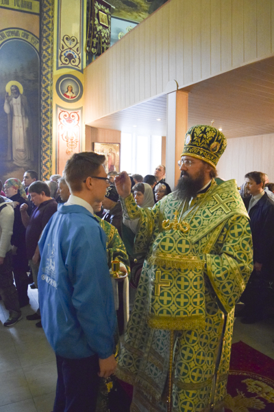 После чтения Святого Евангелия владыка Агафангел совершил помазание верующих освященным елеем.