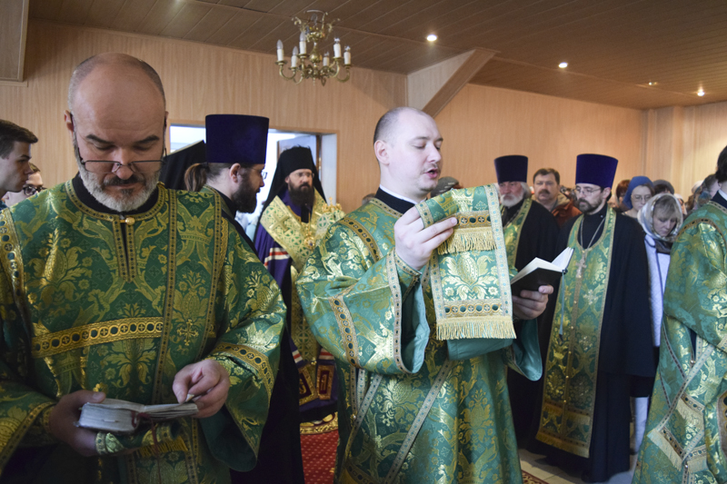 Его Преосвященству сослужили: секретарь Норильской епархии иеромонах Герман (Мельников); благочинный Норильского округа протоиерей Владимир Иванов; штатный клир собора.