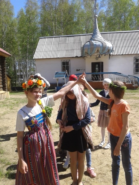 По окончании богослужений иерей Геннадий обратился к прихожанам со словами проповеди и поздравил с Праздником. Свои поздравления для всех собравшихся подготовили и воспитанники воскресной школы, выступившие со стихами и песнопениями о дне Святой Троицы и о наступившем лете. А после праздничного чаепития для ребят были организованы традиционные русские народные игры.
