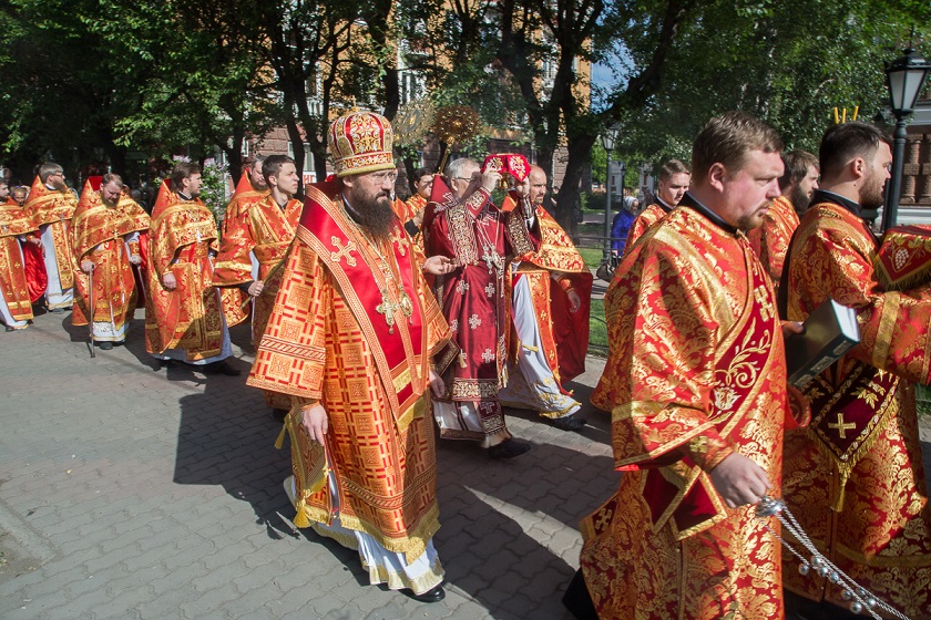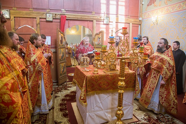 Иерархам сослужили: исполняющий обязанности секретаря Красноярской епархии, благочинный Красноярского левобережного округа церквей, наместник Успенского мужского монастыря Красноярска игумен Иннокентий (Нилов); заведующий канцелярией Красноярской епархии, благочинный церквей Красноярского округа, настоятель храма Иоанна Предтечи протоиерей Николай Ши-кэ-мин; древлехранитель Красноярской епархии, настоятель приходов Емельяновского района иерей Алексий Язев, настоятель Димитриевского храма-часовни и Андреевского храма города Красноярска иерей Виталий Вальтер, штатные священнослужители Иоанно-Предтеченского храма и Покровского кафедрального собора Красноярска.